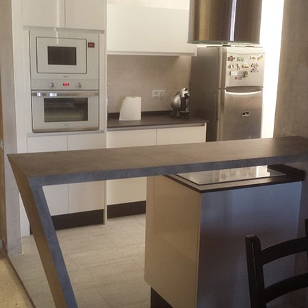Modelo Encimera: Material porcelanico laminam con canto recto de 2 cm.